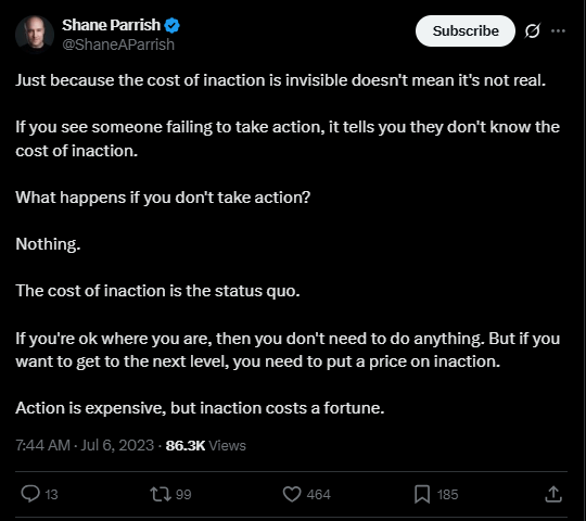 What is the cost of inaction? What is your status quo costing you, and how can you make the pain painful enough to drive you forward?